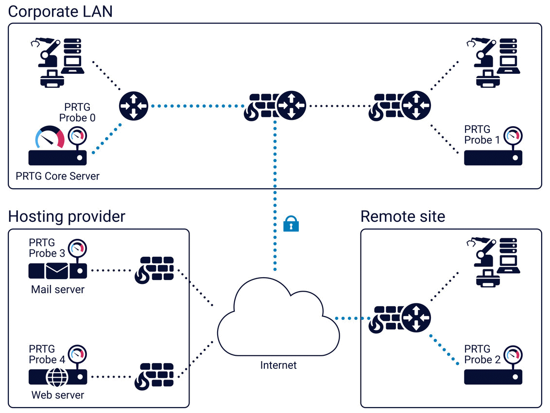 PRTG is a unified monitoring tool that can monitor almost any object that has an IP address. It consists of the PRTG core server and one or more probes: