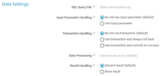 - Use input parameter: Execute an SQL query file that contains a variable. Provide the parameter that you want to use in the query below.