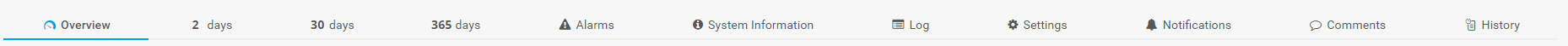 Probe, group, device, and sensor pages have tabs that you can use to navigate between the different options. For example, you can view your network's status, view monitoring results, or change settings.